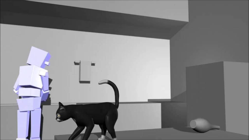 見ている人が、猫と子供の行動を自然で、実際のことのように感じられるよう作りました。