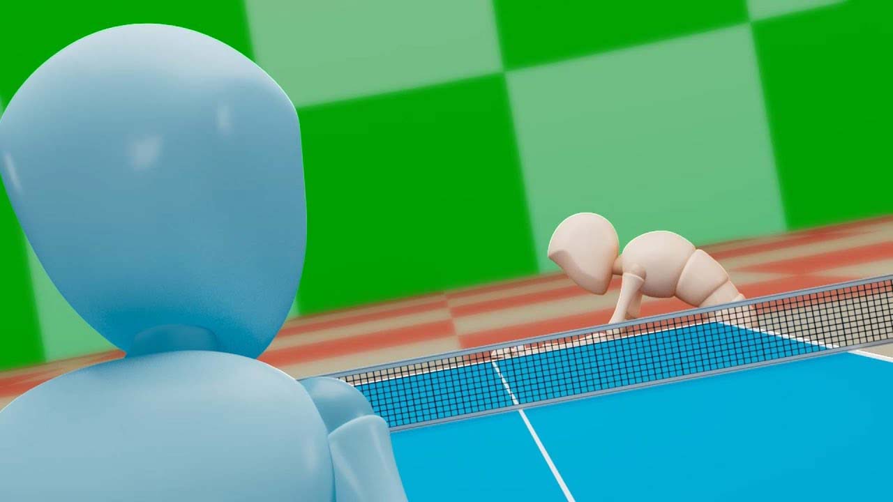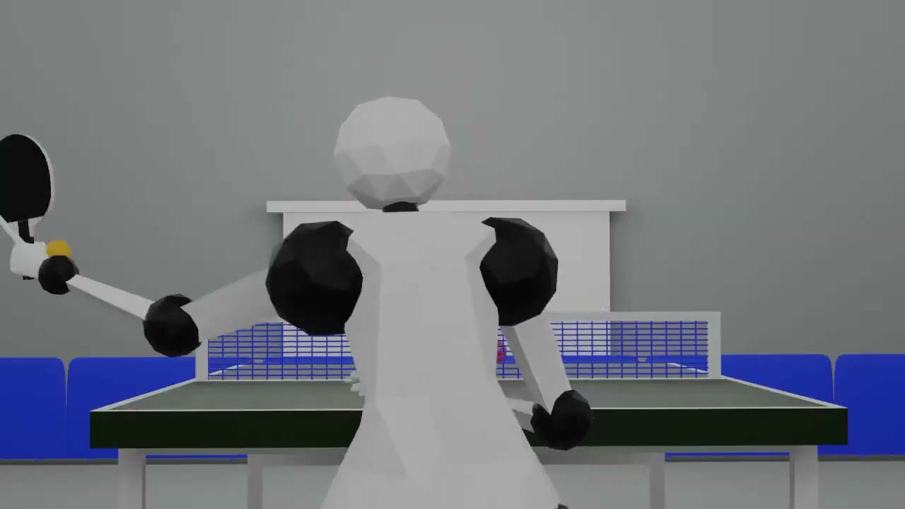 卓球自体の動きに違和感は無かったです!カメラワークも考えたなと思います!空中での球のカットが少し長いのと、柵を飛び越える動きもうちょい!っという感じ。(松井)